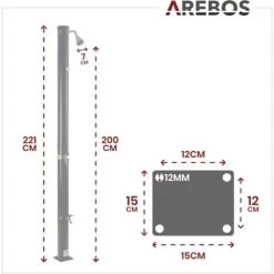 La housse de protection d’Arebos protège votre douche solaire de la pluie et de la saleté. De plus, elle se ferme de manière compacte à l’aide de deux fermetures velcro et d’un cordon de serrage et offre peu de résistance au vent.