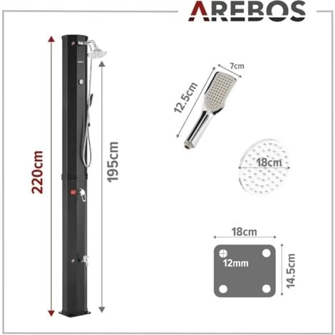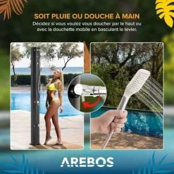 Douche solaire AREBOS 60 L avec thermomètre et douchette à main