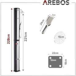 Douche solaire AREBOS 60 L avec thermomètre et douchette à main