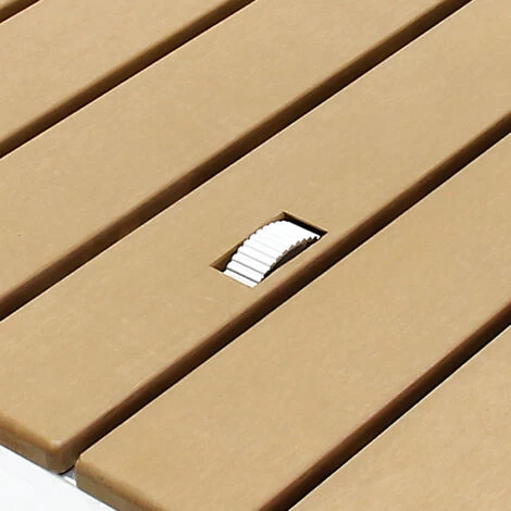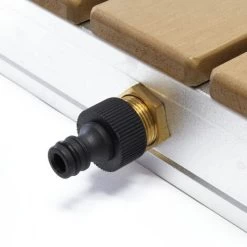 La douche de sol est équipée de 22 buses d’eau d’où jaillissent les jets revigorants. Vous nécessitez un tuyau d’arrosage standard (¾ pouce) pour assurer l’alimentation en eau. Le sol de la douche de jardin se compose d’un sol en bois composite en teck et d’un cadre en aluminium, ce qui lui confère une robustesse particulière. Vous pouvez profiter longtemps de votre douche grâce aux matériaux utilisés qui garantissent étanchéité et résistance aux intempéries.