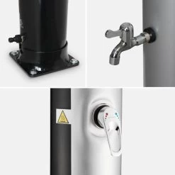 L’eau peut chauffer jusqu’à 60°. Vous n’avez qu’à relier votre tuyau d’arrosage (non fourni) à votre douche solaire.