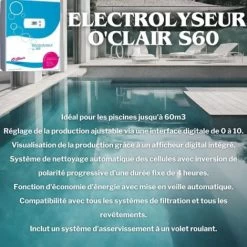 Electrolyseur piscine au sel O’Clair S60 pour piscines jusqu’Ă 60 m3
