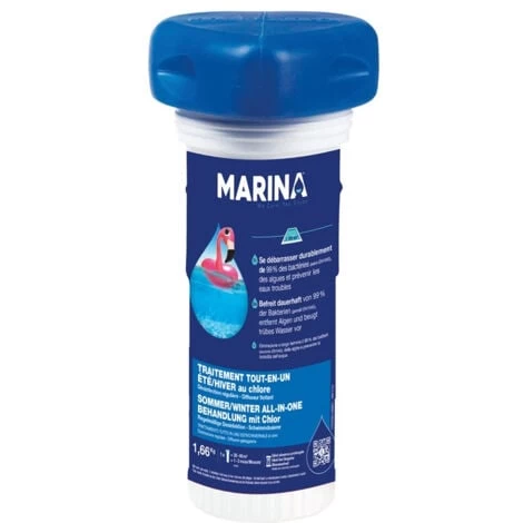 Traitement complet pour eau de piscine. Ce produit de traitement sous forme de diffuseur flottant est parfait pour un traitement de longue durée en particulier lors des absences prolongées. Pour bassin de 30 à 60 m³, jusqu’à 3 mois d’efficacité.