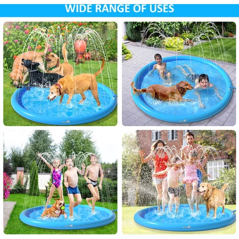 【Jouet d’Eau d’Été Idéal】Avec objectif–la sécurité avant tout, ce jeu d’eau exterieur ne conviennent pas seulement aux adultes, mais aussi aux enfants plus de deux ans et au chien! Le tapis avec jet fontaine résiste à la forte température, parfait pour